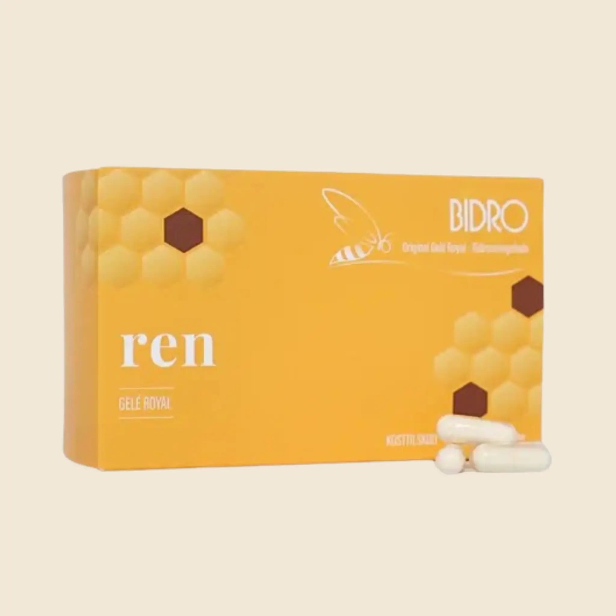 Bidro Ren Gelé Royal er et vegetabilsk kosttilskud, hvor hver kapsel indeholder 100 mg frysetørrret Gelé Royal, hvilket svarer til 300 mg. frisk Gele Royal